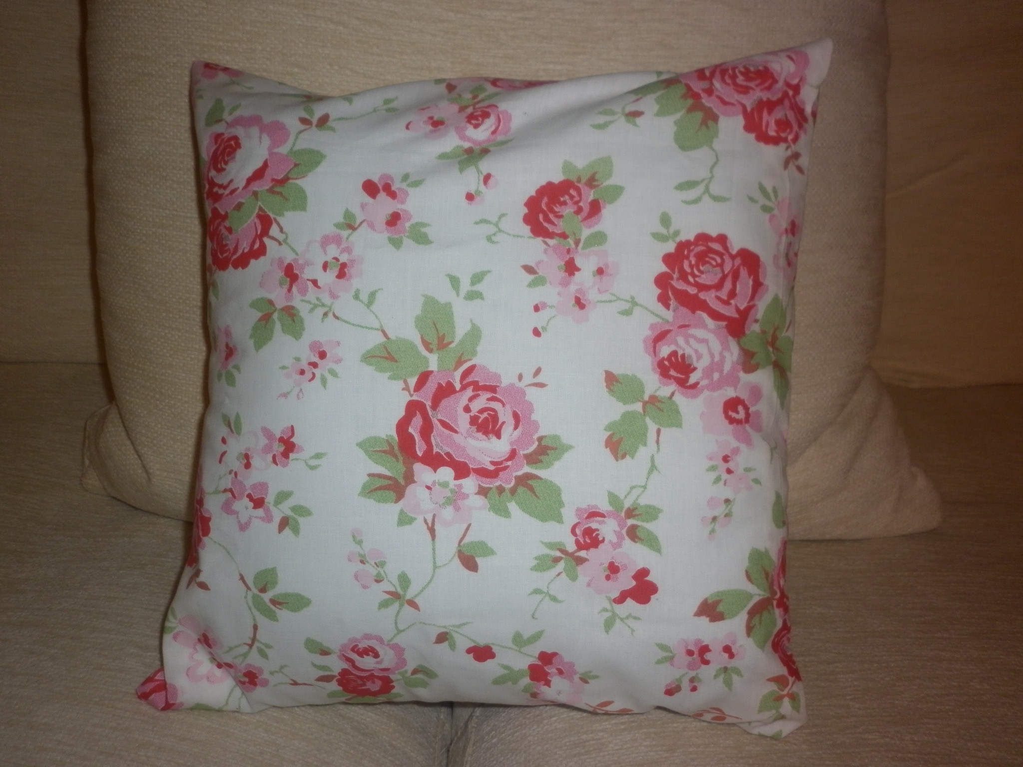 Made with the floral fabric on the front and white drill cotton envelope back.