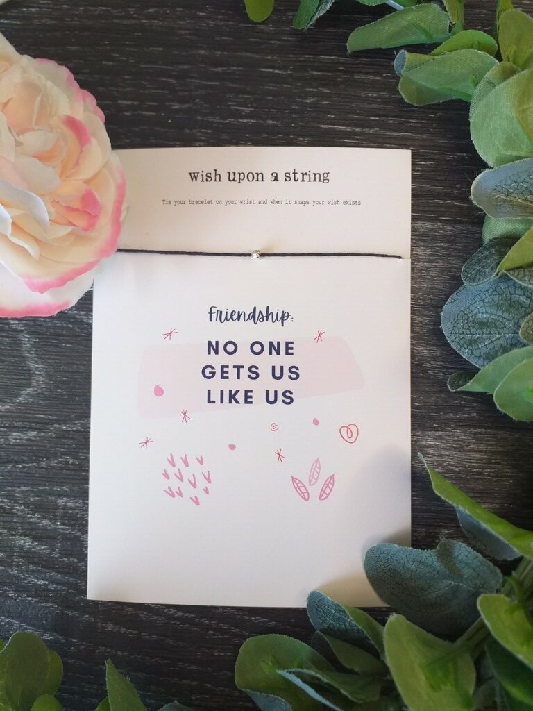 Friendship wish string. What a wonderful idea! A small gift with the following words on the card.