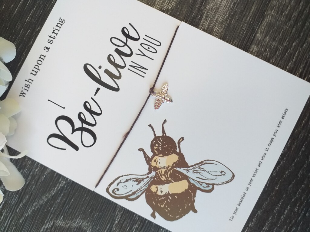 I Bee-lieve in You wish string. What a wonderful idea! A small gift with the following words on the card.
