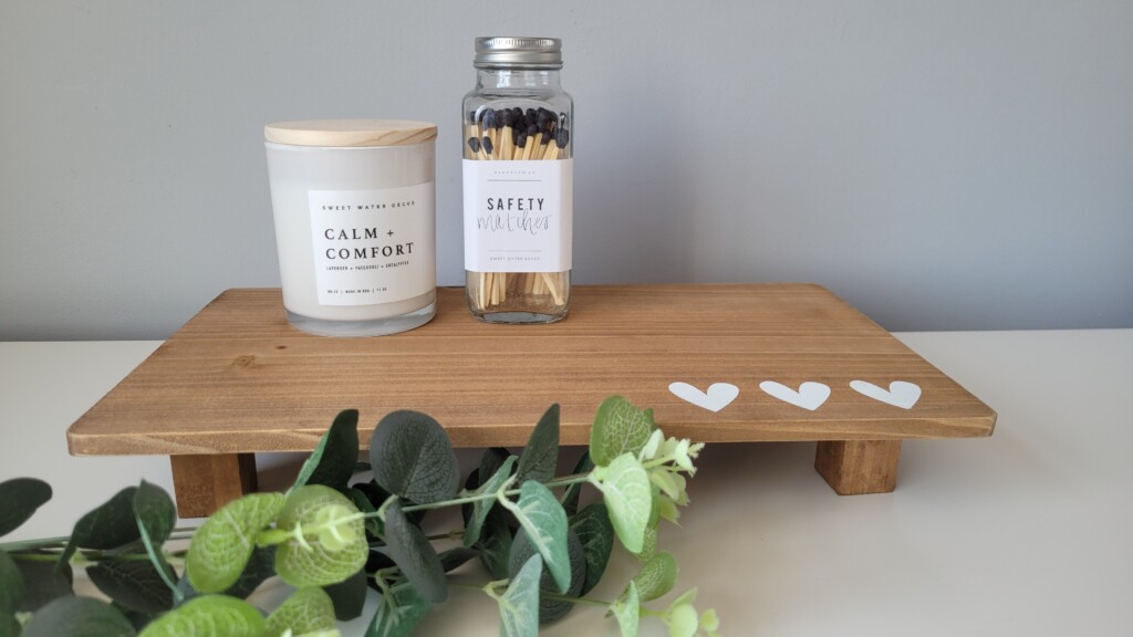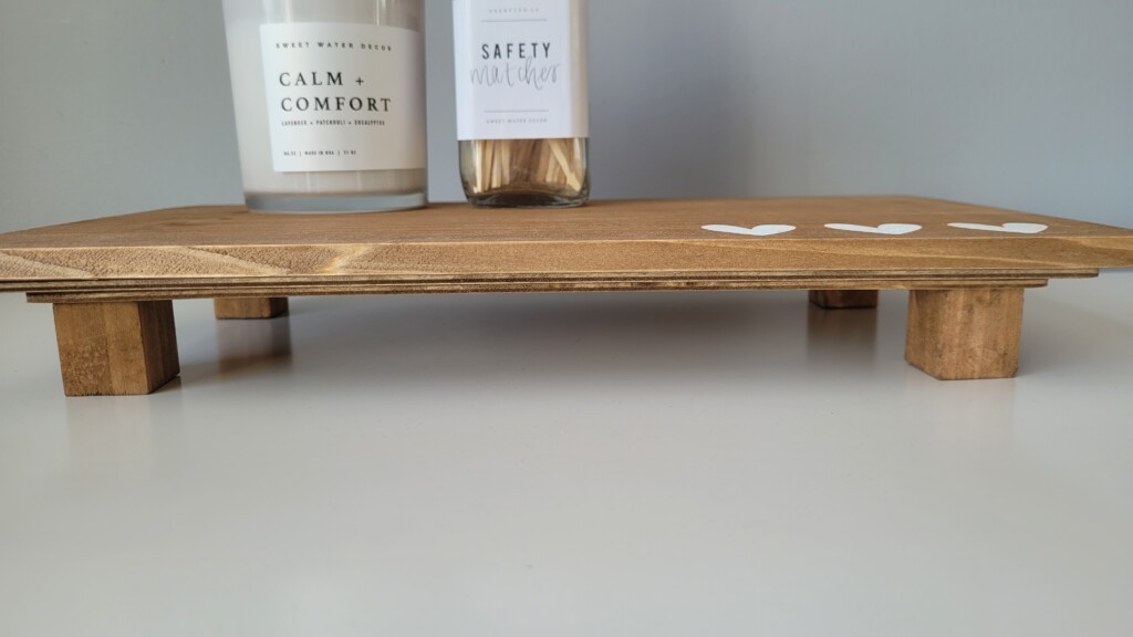 How wonderful is this, a wooden tray on feet so you can show off your home decor products to your family and friends. Add candles, plants, a vase of flowers, the list is endless.