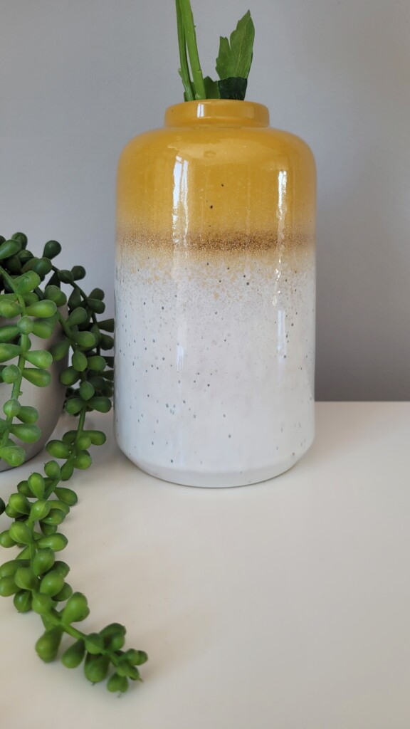 At 17 cm high this beautiful mustard vase is great for adding a hint of colour to a room.