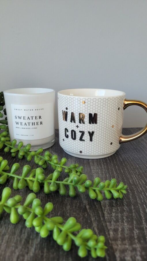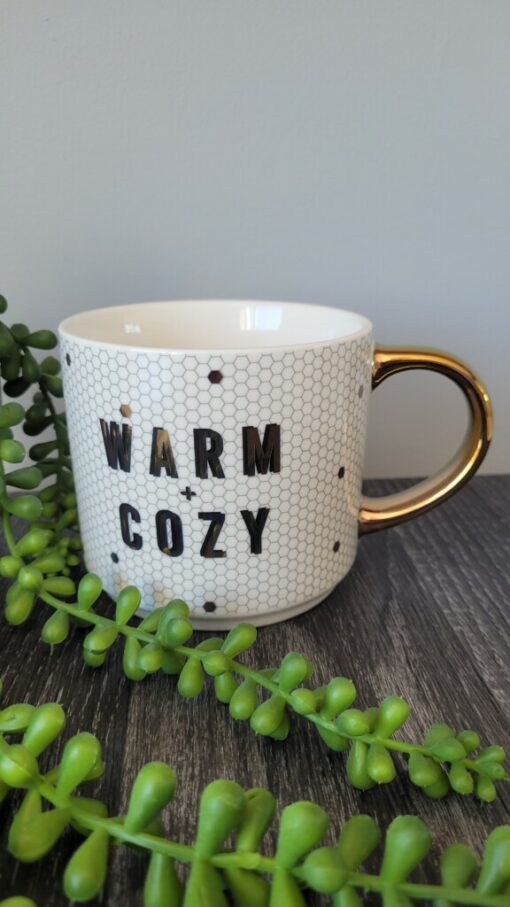 With real gold embellishing on the handle and design, our Warm + Cozy Tile Coffee Mug is designed to enhance your coffee drinking experience. This will become your new favourite holiday coffee mug while decorating the tree or wrapping presents! This mug is a great birthday gift or Christmas gift.