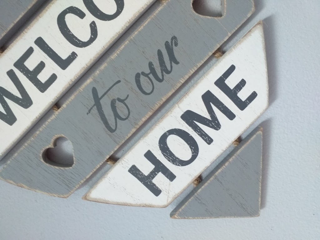 This gorgeous sign is made up of pieces of wood joined together with twine on the back.